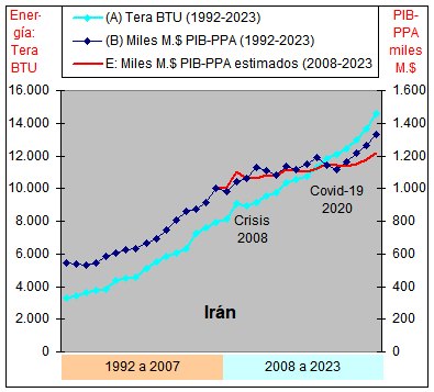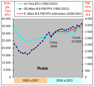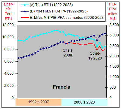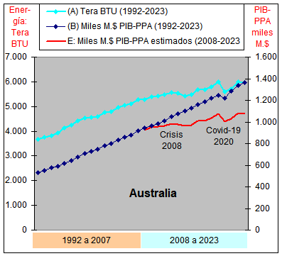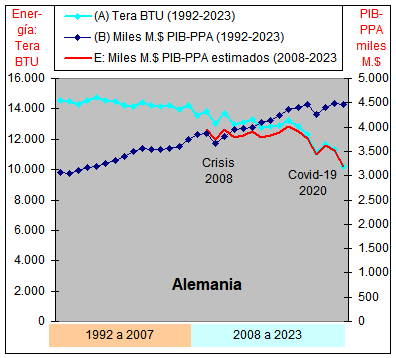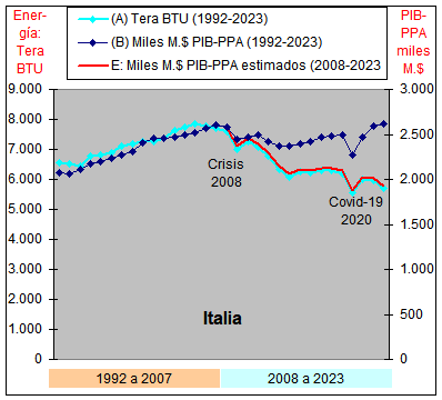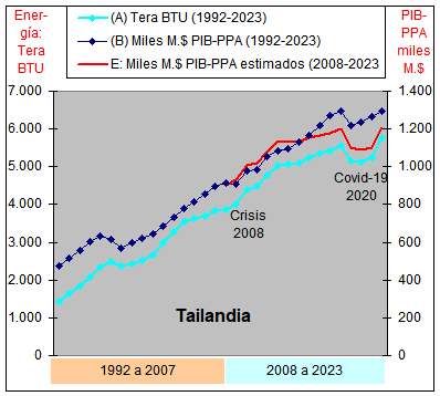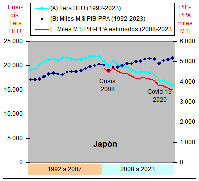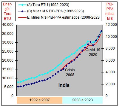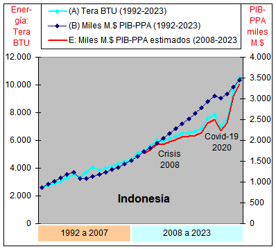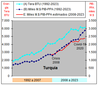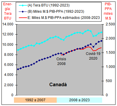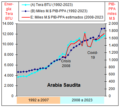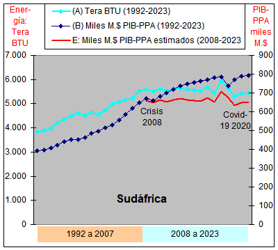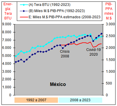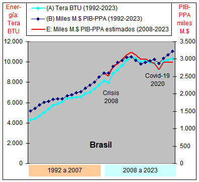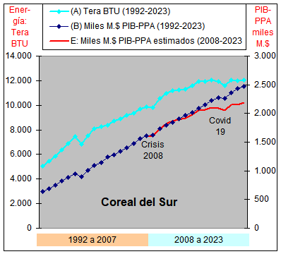 consumo de Energía y un crecimiento casi plano del PIB-PPA con una