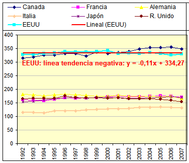ambas variables en el periodo (1992-2007) fue de r = 0,972 correspondiente a