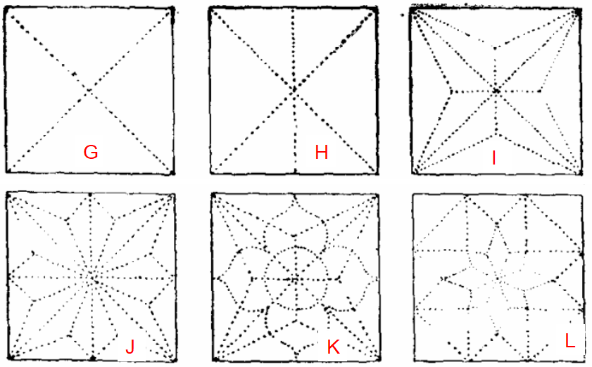 | C19_(fig. 1252)_f. 798-f.799- f.800.—Esquema de lazos de ocho (f. 793) y de doce (f. 794); de seis (f. 796) y de doce (f. 797) | |||||||||