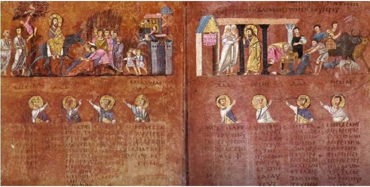| C11_(fig. 747)_Miniaturas de la Catedral de Rossano con escenas de la curación del ciego | |||||||||