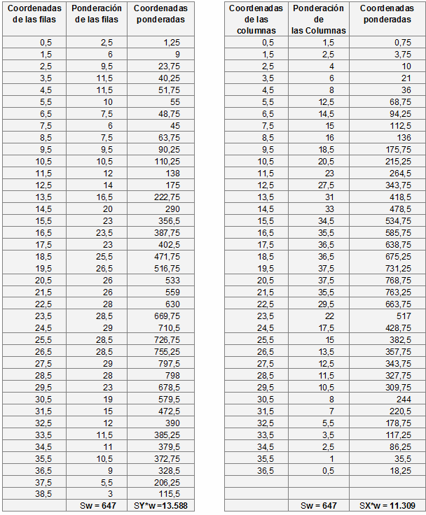 cubra todo el área que conforman los ejes Y, X; se ponderan