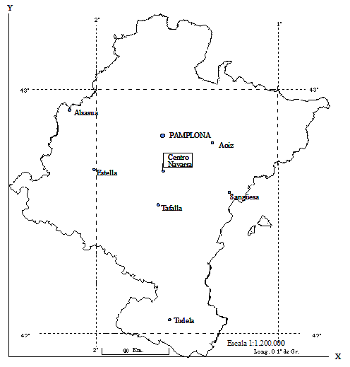 mapa de Navarra a escala 1:1.200.000 y se han realizado el cálculo