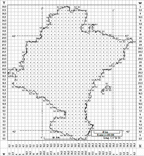 las irregularidades de los límites del mapa, todas las cuadrículas